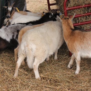 Our herd consists of 20 goats and sheep. Our herd has a mix of breeds; Pygmy, Nigerian Dwarf, and Katadhin sheep. Nigerian Dwarfs and pygmys both share roots in Africa, originally imported as zoo animals due to their uniquely small stature.
